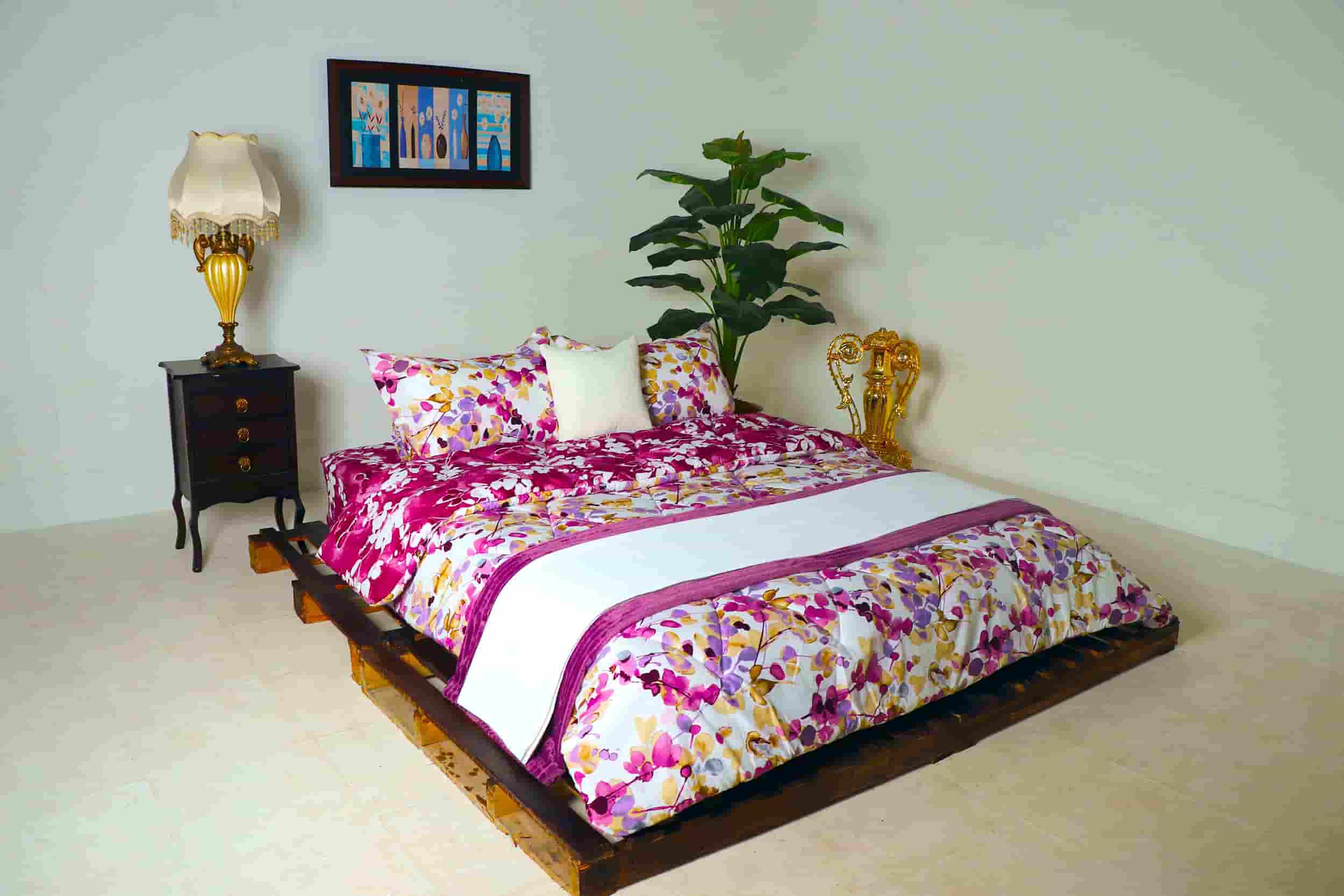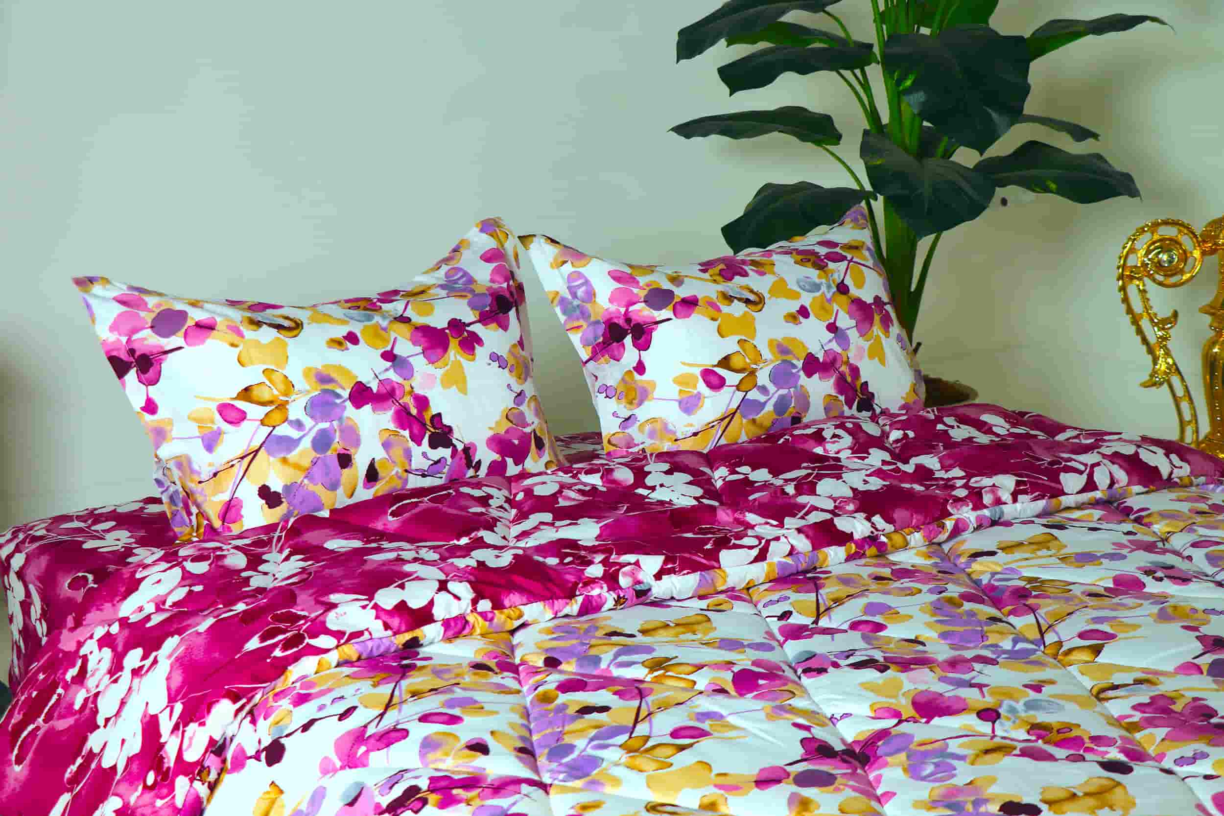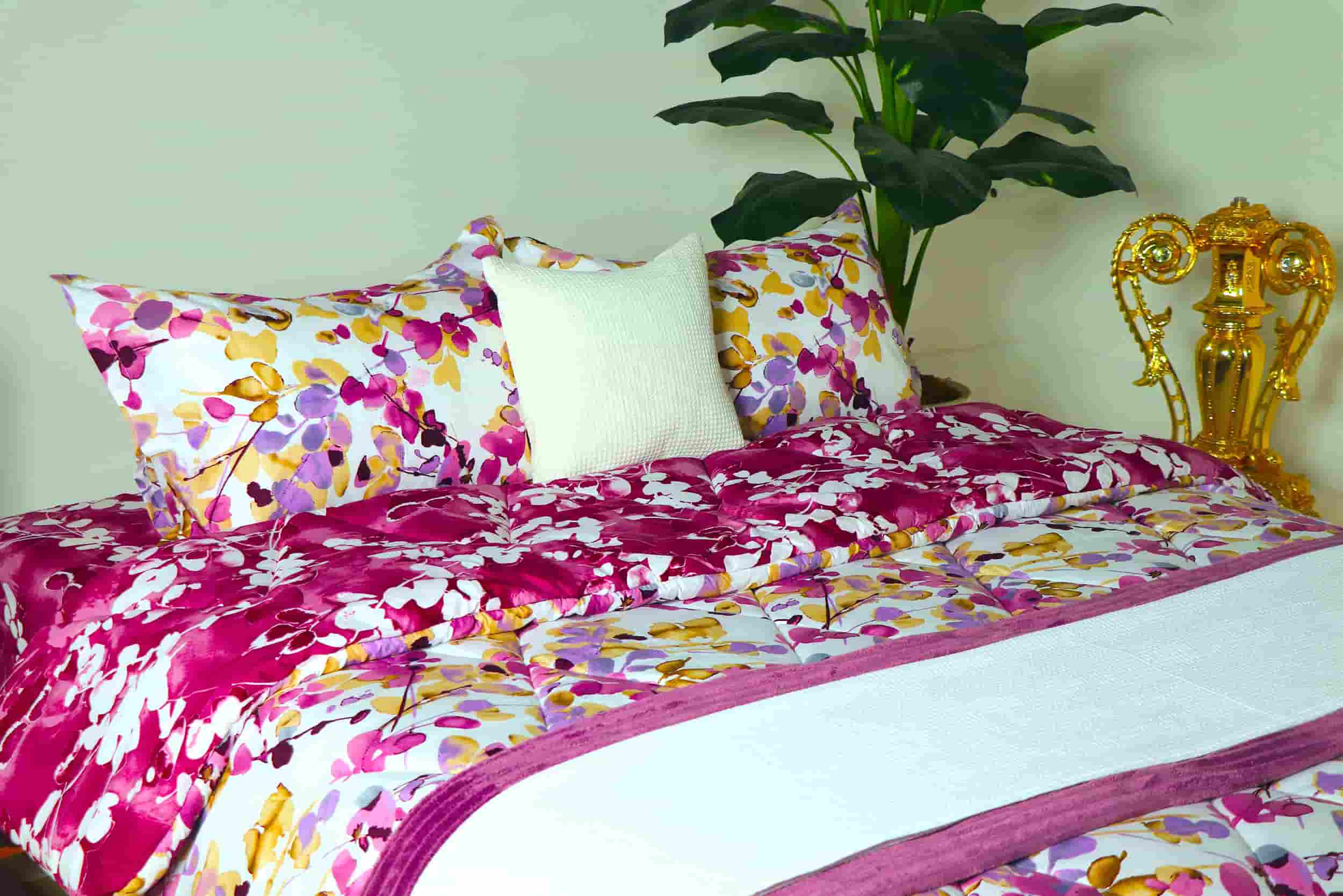 سرویس لحاف دو رو پیگمنت کد 7 روتختی دو رو مدل گل صورتی طوسی