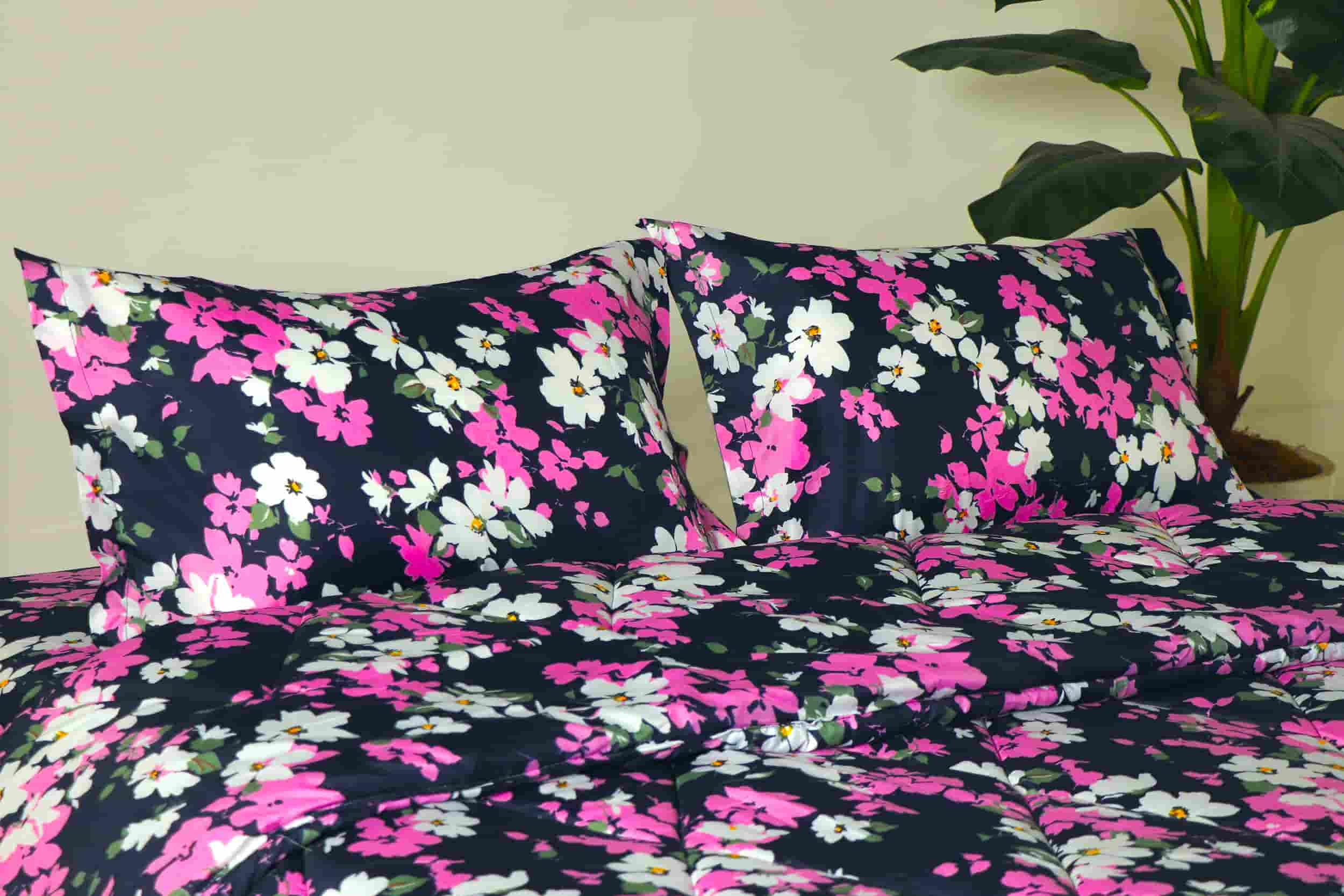 سرویس لحاف دو رو پیگمنت کد 7 روتختی دو رو مدل گل صورتی طوسی